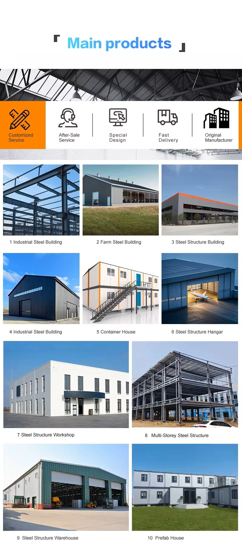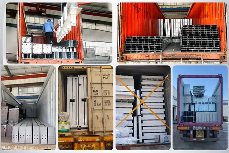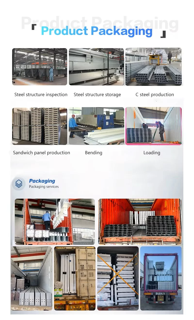 - Детали упаковки: используется защитная упаковка; стальные конструкции грузятся в контейнеры типа 40’OT или 40’GP; панели крыши и стен, а также другие компоненты — в контейнеры типа 40’HQ или 40’GP